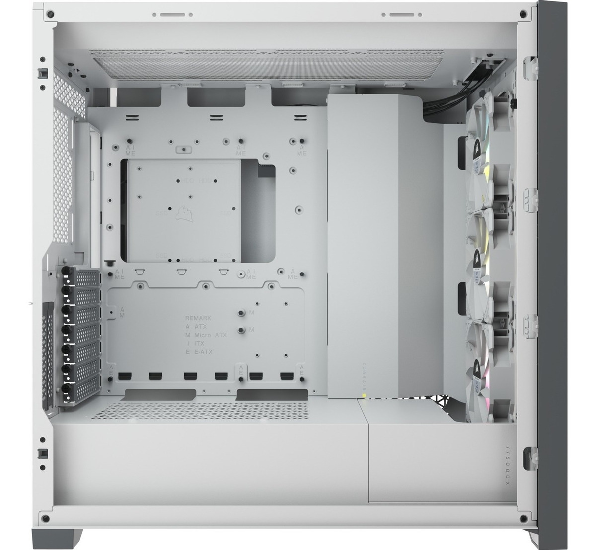 El CORSAIR iCUE 5000X RGB es un chasis semitorre ATX que deja ver el PC y no sus cables. Cuatro paneles increíbles de cristal templado y tres ventiladores CORSAIR SP RGB ELITE que exponen su PC.